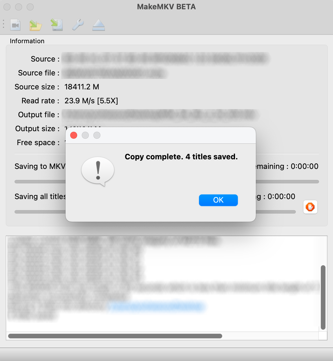 Saving all titles to MKV files 여기 남은 시간이 최종 리핑 시간입니다!